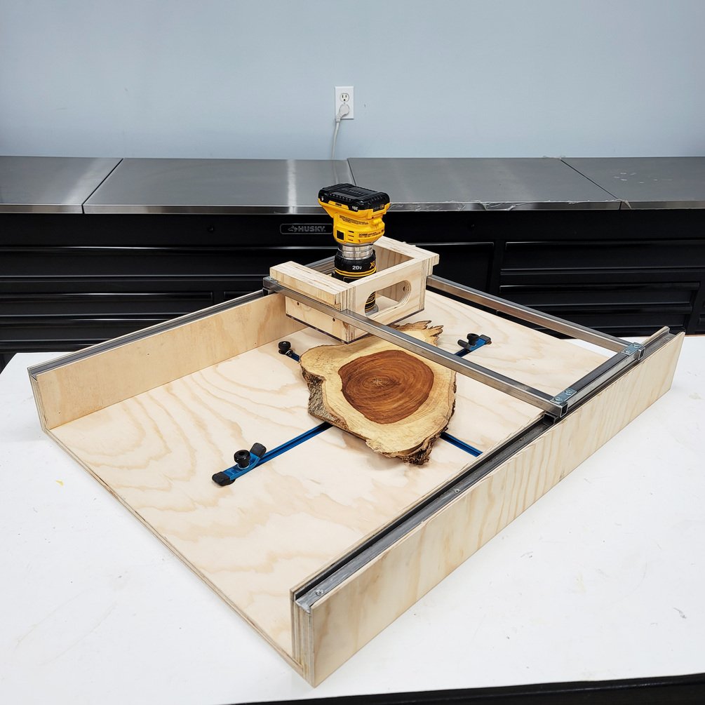 Flattening lumber and epoxy can be challenging without the right tools. With this self-contained jig, you can set it up in seconds and start flattening your projects. The adjustable router base lets you flatten materials as thin as 1/2in and ad things a 4X4in lumber.